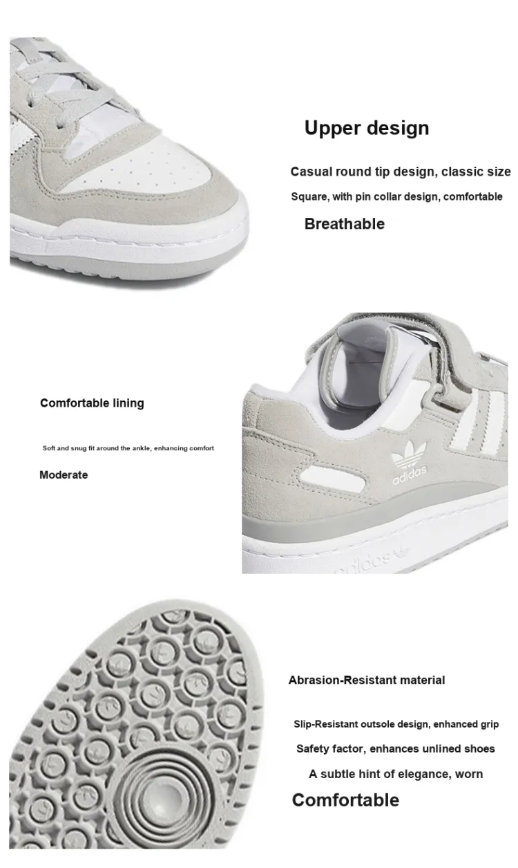 Adidas Originals FORUM Противоскользящие Устойчивые к истиранию Низкие Кроссовки для скейтбординга Унисекс Серые