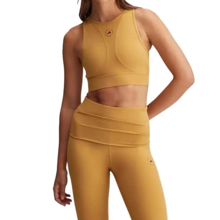 Adidas By Stella McCartney TrueStrength Йога КРОП ТОП Спорт Жилет Женские Сладкий Дюна