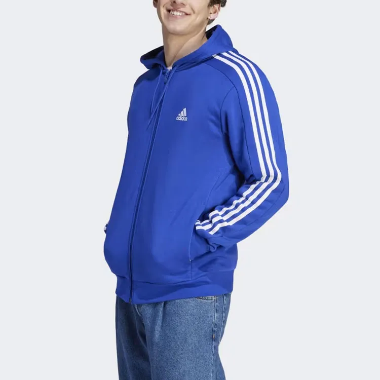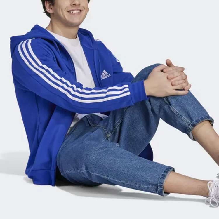 Adidas Essential Fleece 3 Stripes Full Zip Hoodie Hoodie Sweatshirt Men's Blue