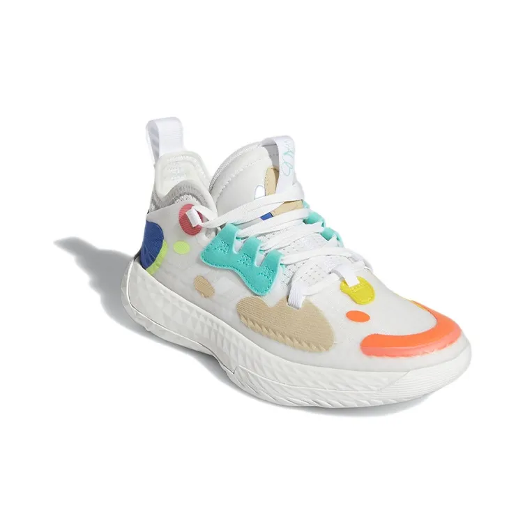 Adidas Harden Vol.5 J Противоскользящие Устойчивые к истиранию Низкие Баскетбольные Кроссовки Белый Оранжевый Подростки