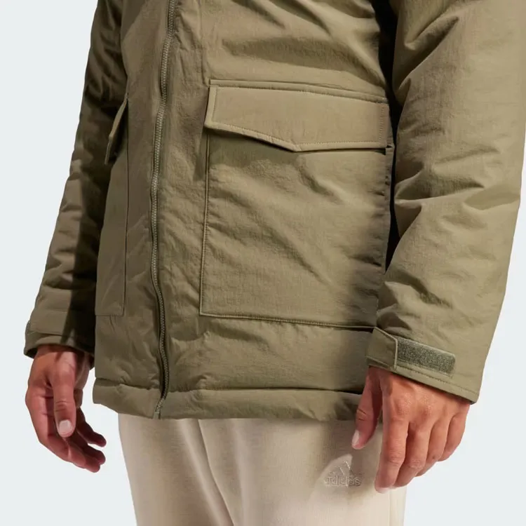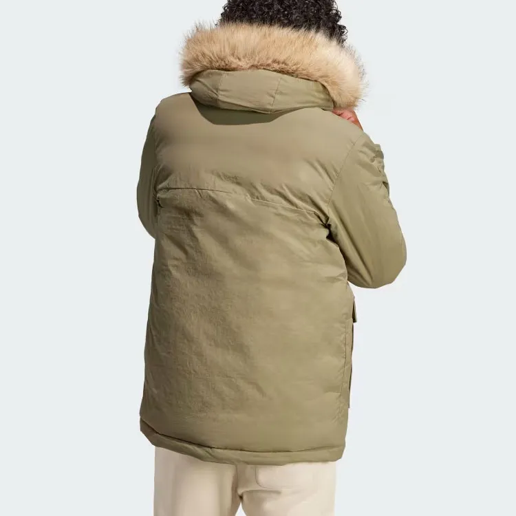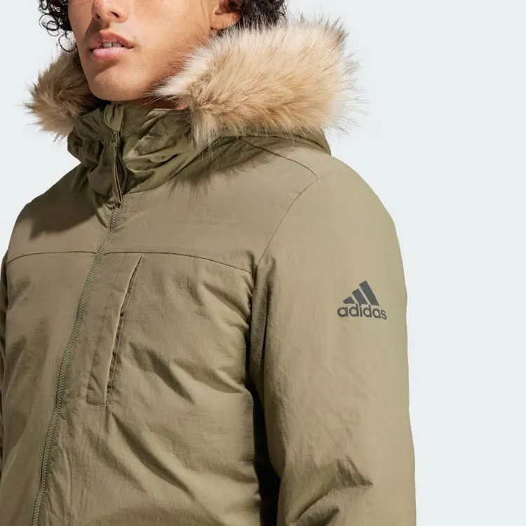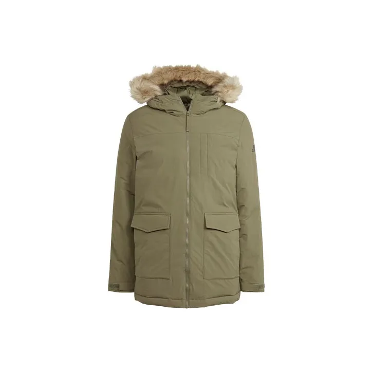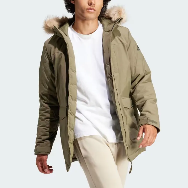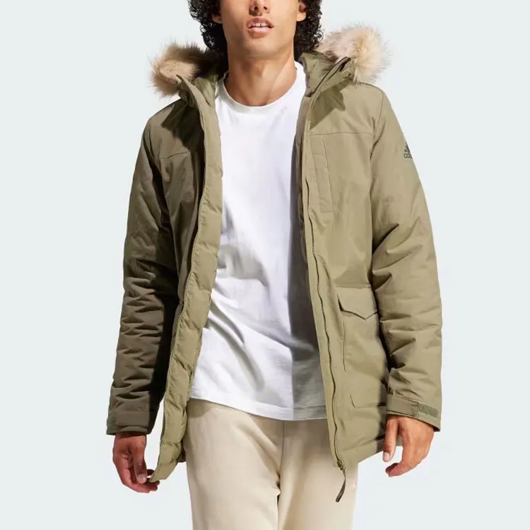 Adidas С капюшоном мех парка пальто мужской оливково-зеленый