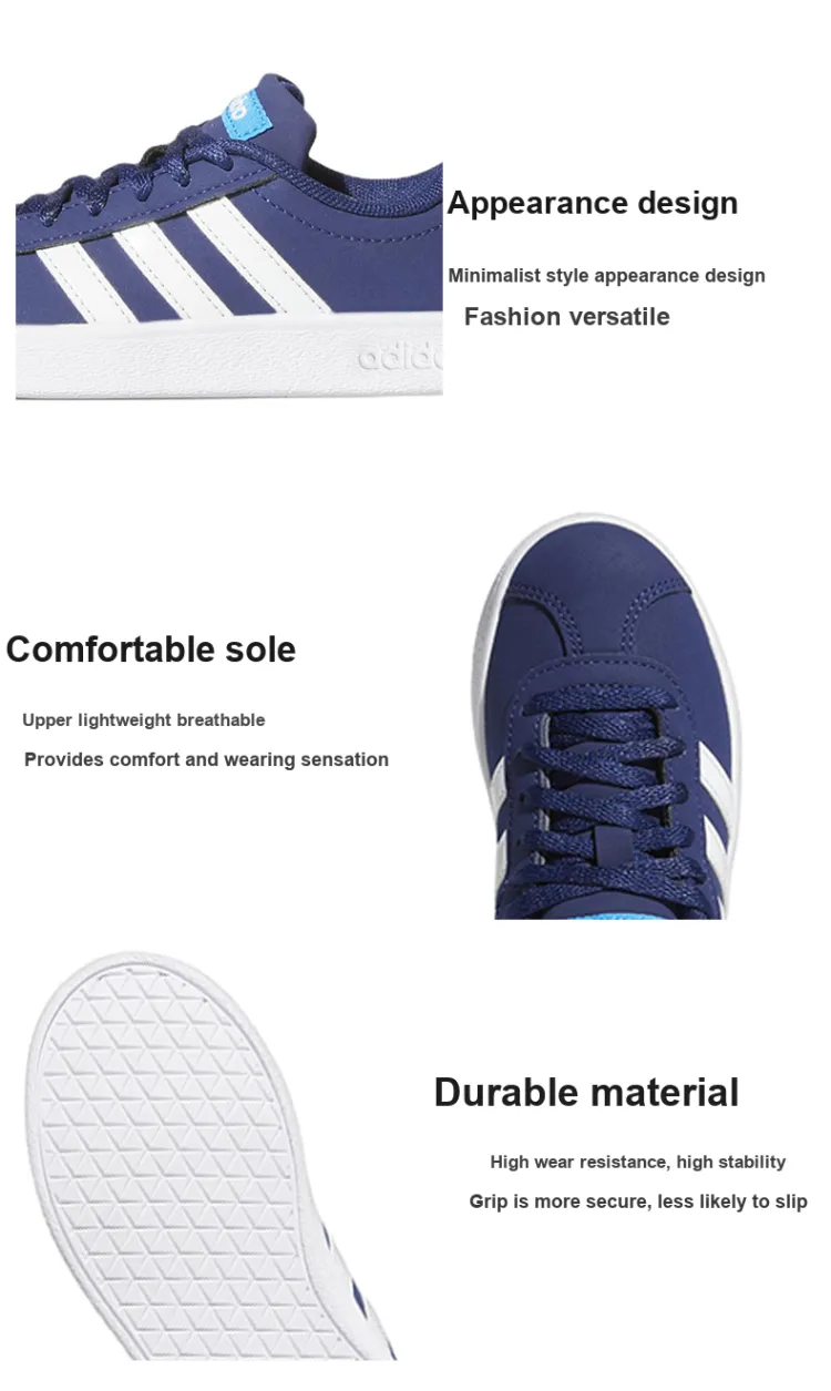 Adidas Neo VL Court 2,0 Износостойкий и Легкий Низкий Топ для Детского Скейтбординга Циан Синий Детский