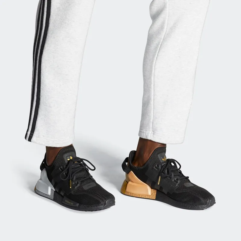 Adidas Originals NMD_R1 V2 Slip Резистентный и Дышащий Низкий Топ Casual Унисекс Черный Белый Желтый