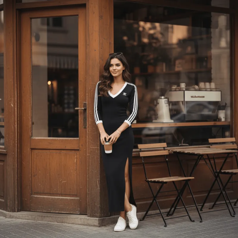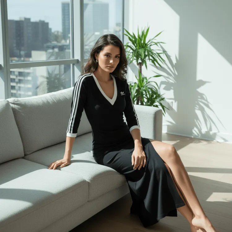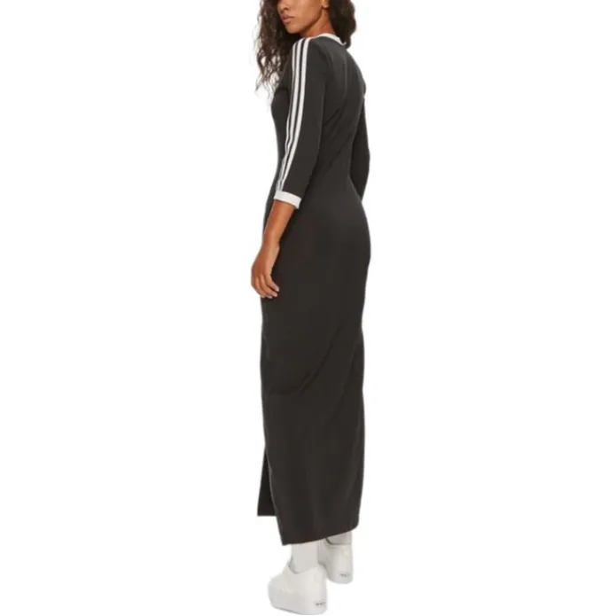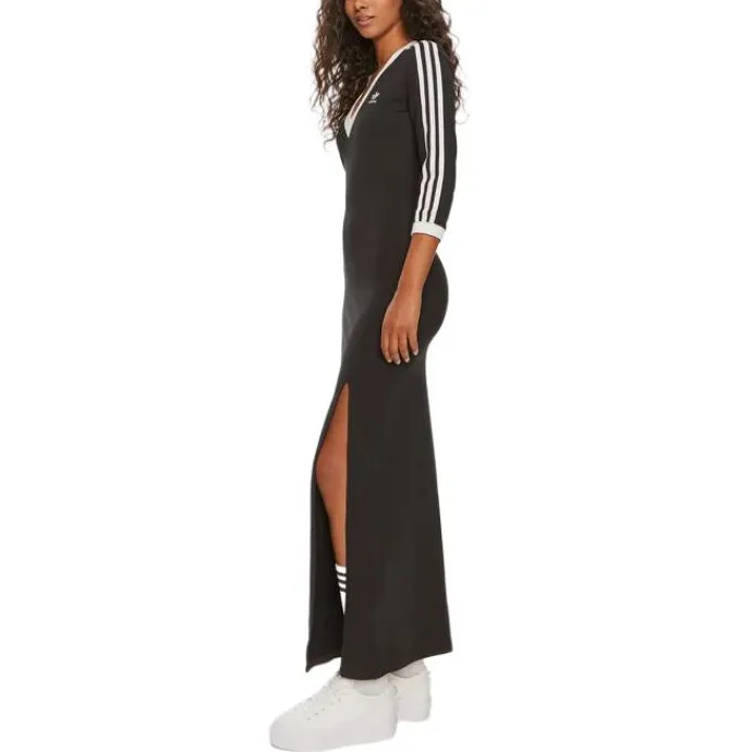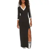 Это женское платье 3-Stripes Maxi Dress от adidas originals отличается классическим дизайном с трехполосной цветовой комбинацией, что придает уникальный стиль бренда. V-образный вырез не только добавляет элегантности, но и обеспечивает комфорт в области шеи при носке.