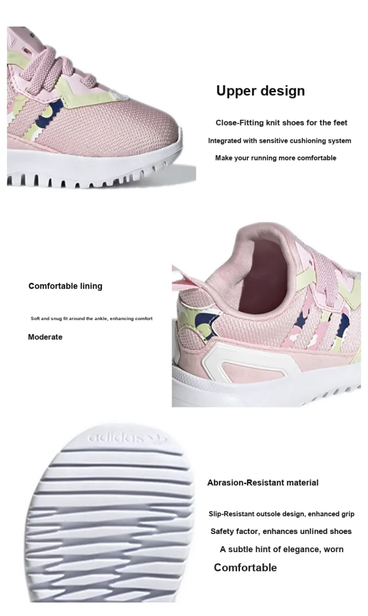 Adidas Originals Flex Collection Устойчивая к истиранию противоскользящая низкая обувь для малышей розового цвета для новорожденных и малышей