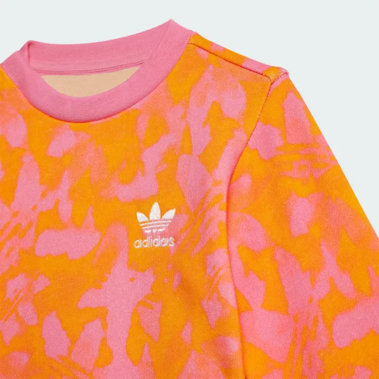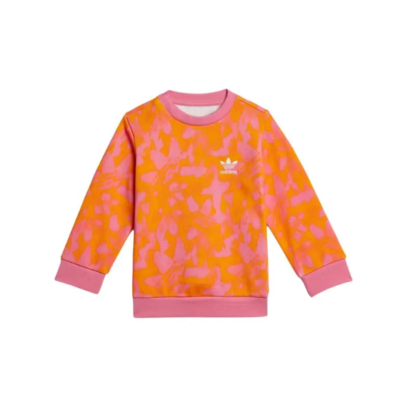 Adidas Originals Детская одежда Лето ALLOVER PRINT CREW SET Костюм для малышей и детей розовый оранжевый