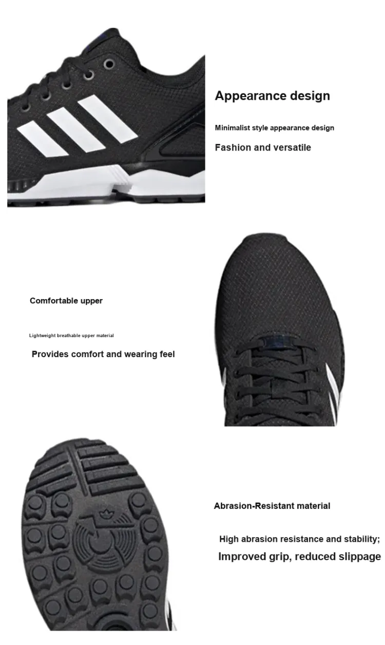 Adidas Originals ZX Flu Аbrasion Resistant Дышащие Низкие Беговые Кроссовки Мужские Черно-Белые