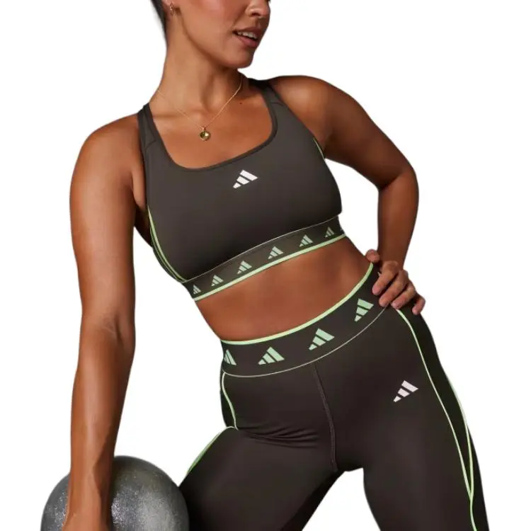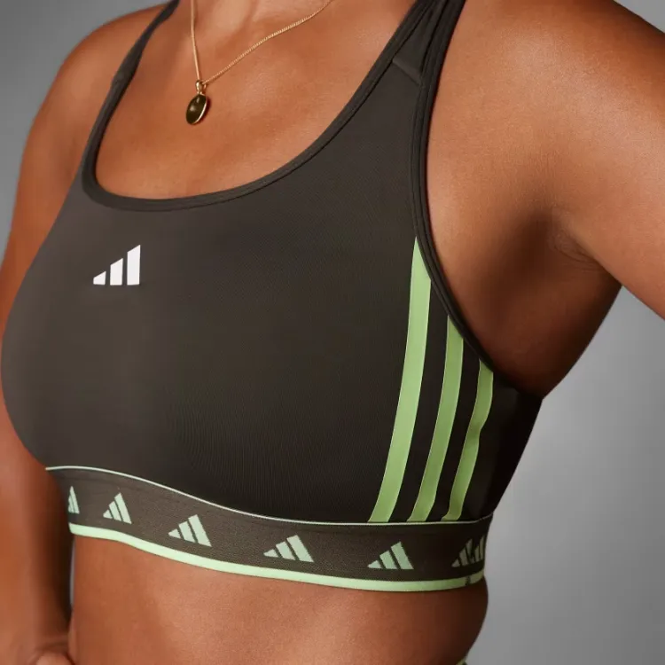 Adidas POWERREACT Тренировки HYPERGLAM Цвет POP Бюстгальтер Женские Темная тень Оливковый Зеленый Искра