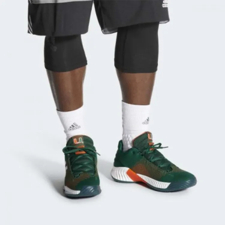 Adidas Pro Bounce 2018 Low Shock Absorbers Противоскользящий Низкий Топ Баскетбольные кроссовки Мужской Зеленый Белый Оранжевый