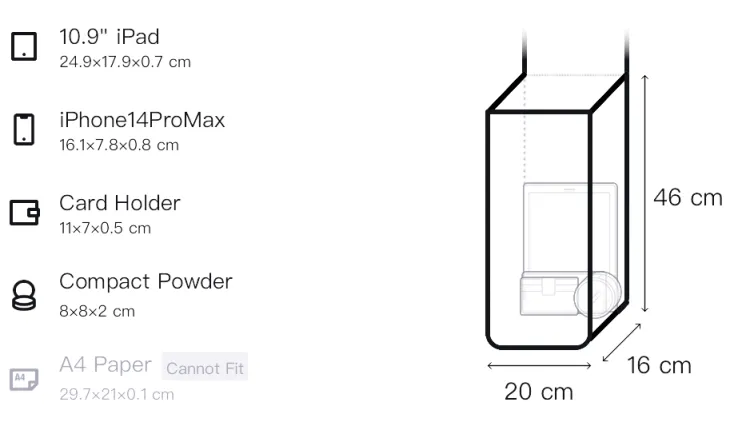 Д20*Ш16*В46см
