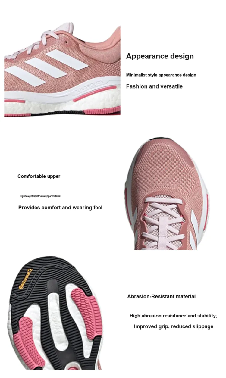 Adidas Solar Glide 5 Устойчивые к истиранию амортизаторы Низкий топ Беговые кроссовки Женские Розовые