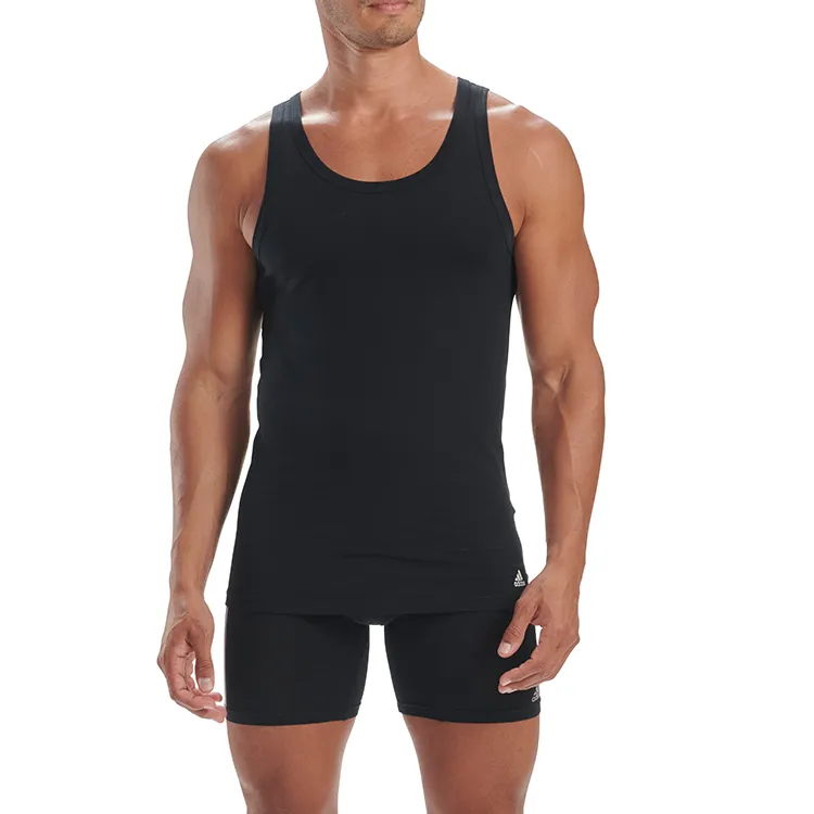 Adidas Однотонный Эластичный Облегающий крой Круглый вырез Мужской 2 шт Черный