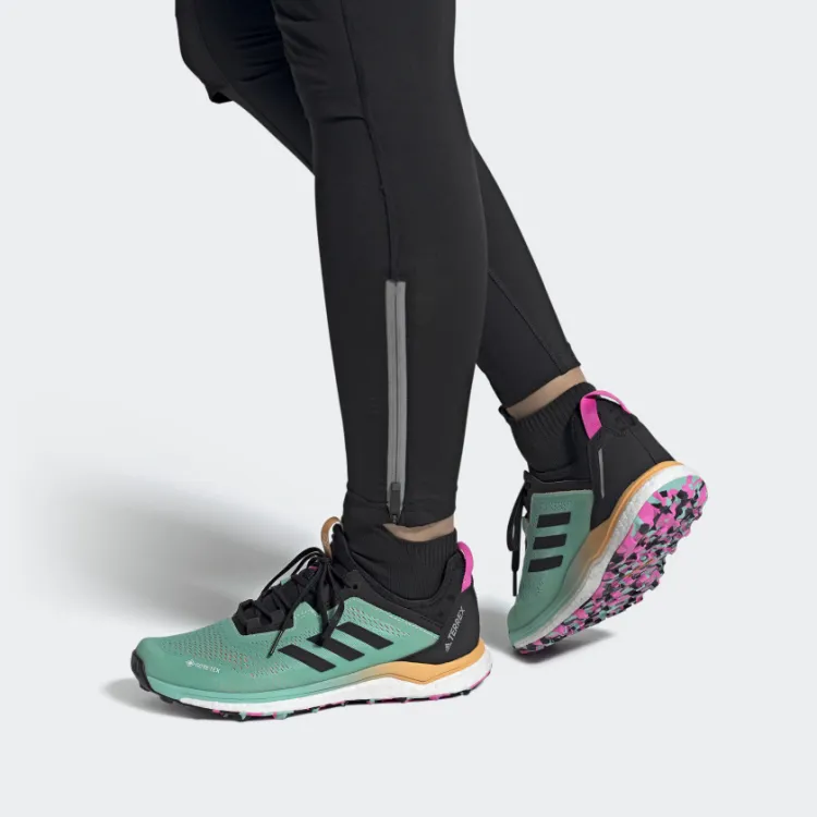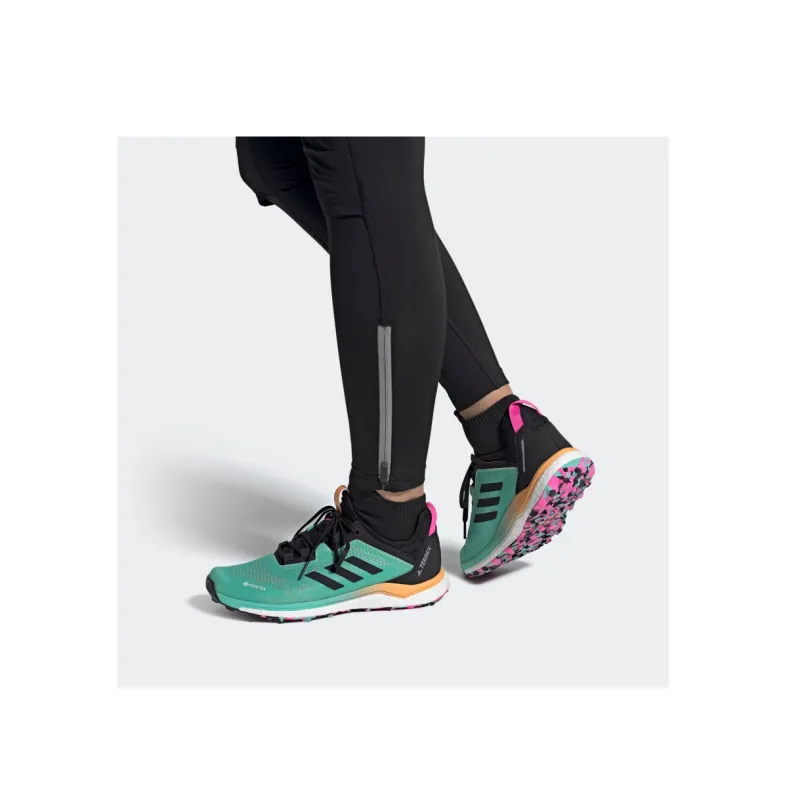 adidas Terrex Agravic Flow Дышащие Низкие Кроссовки для Бега Женские Зеленые Черные Апельсиновые