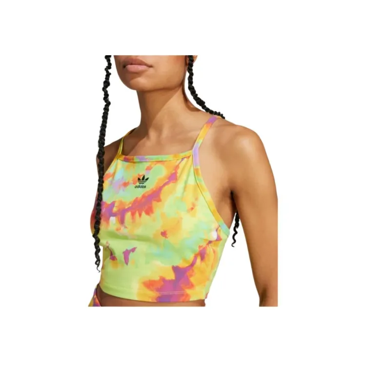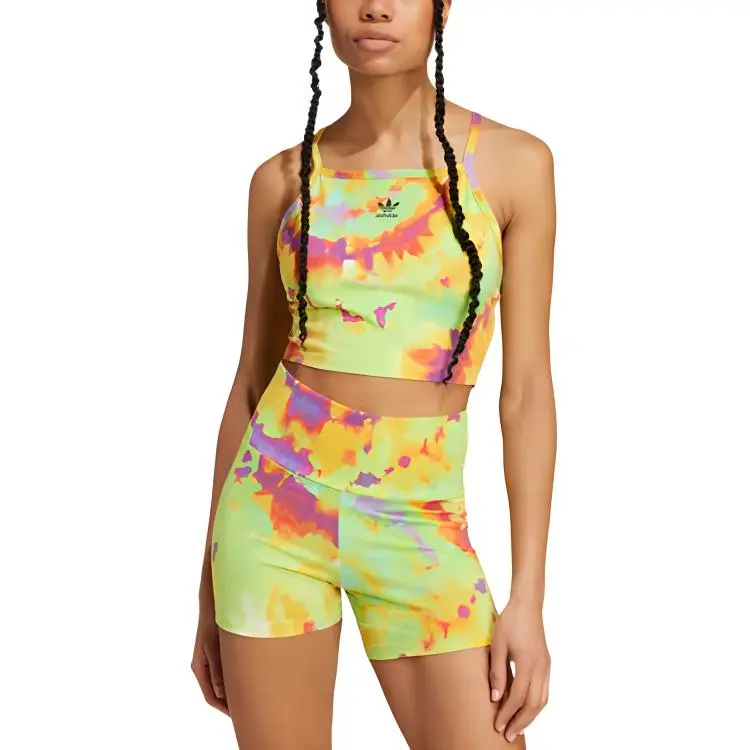 Adidas Галстук Окрашенный CROP TOP Топ на бретелях Женский Желтый Многоцветный