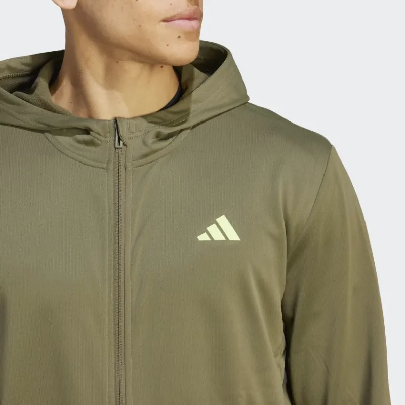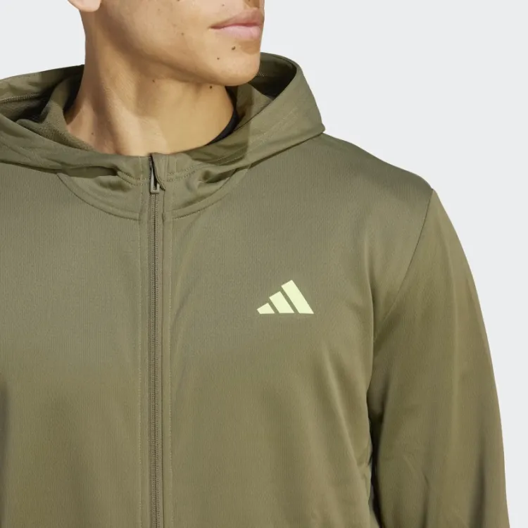 Adidas Хвост платья Essentials Seasonal Тренировки Full Zip Hoodie Толстовка Мужской Оливково-зеленый