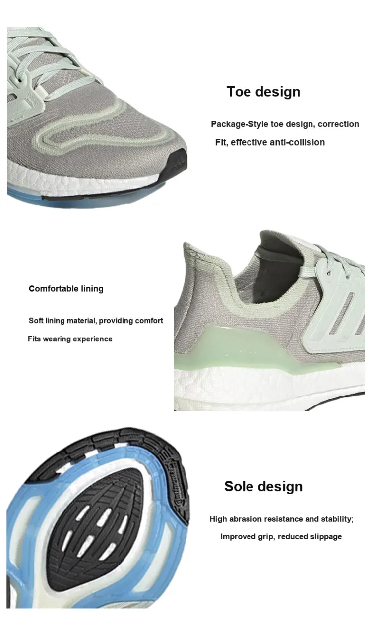 Adidas ULT Ultraboost 22 Дышащие Низкие Кроссовки для Бега Женские Серые Зеленые