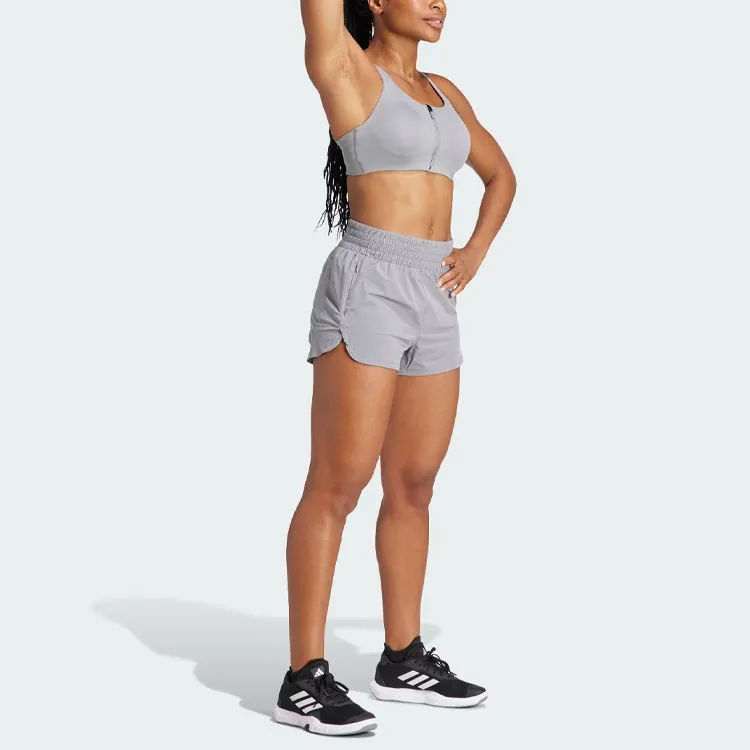 Adidas Pacer Эластичный трикотаж молния карман Lux шорты спортивные шорты женские серый