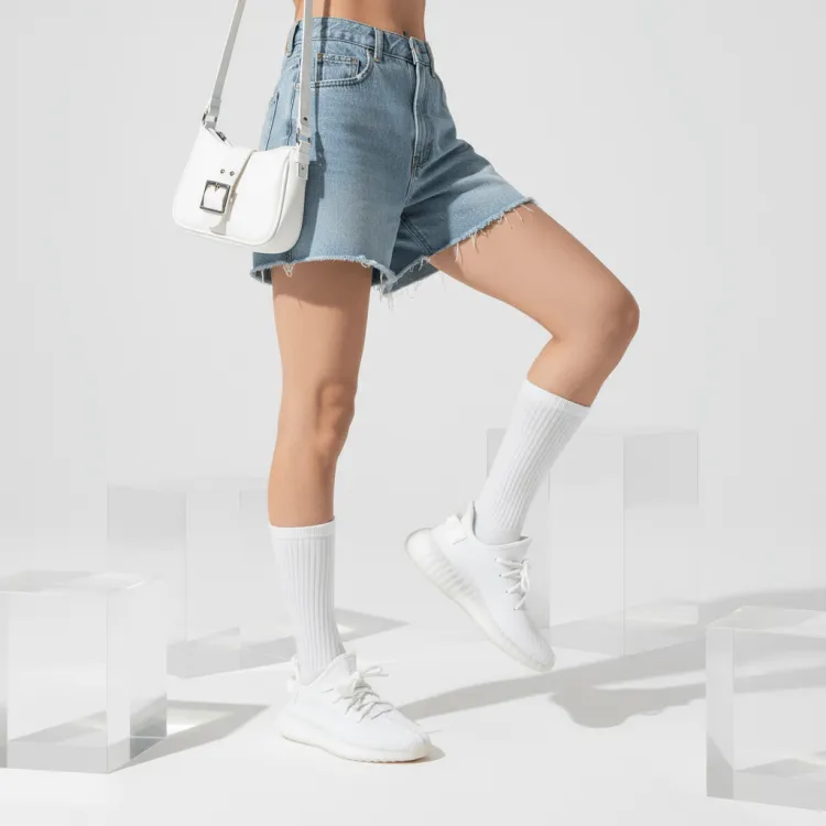 Модель представлена в классическом белоснежном цвете "Triple White", который создает ощущение свежести и чистоты. Нежный оттенок напоминает мороженое, добавляя образу нотку утонченного очарования.