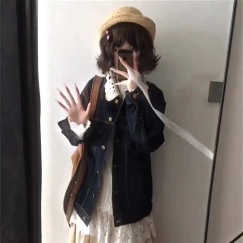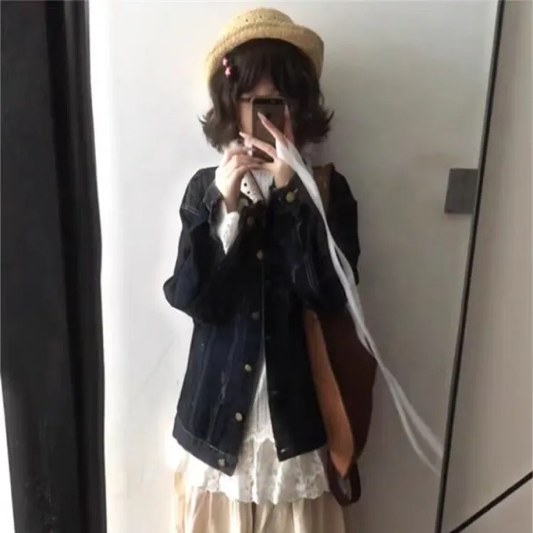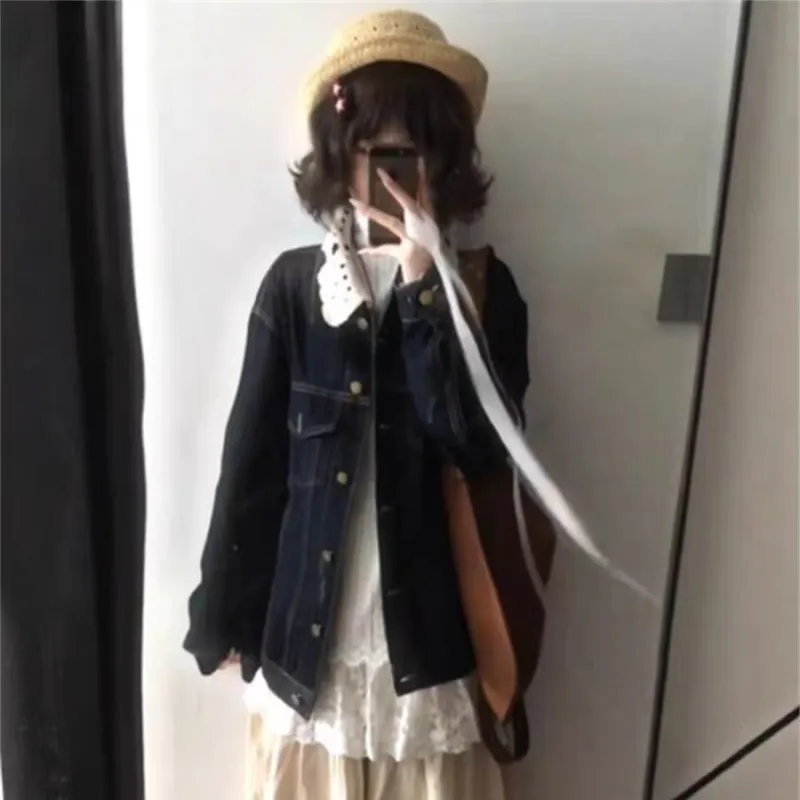 ADXKM Темно-синий женский джинсовые куртки