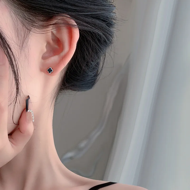 Стиль:Серьги-гвоздики с черным четырехлистным клевером