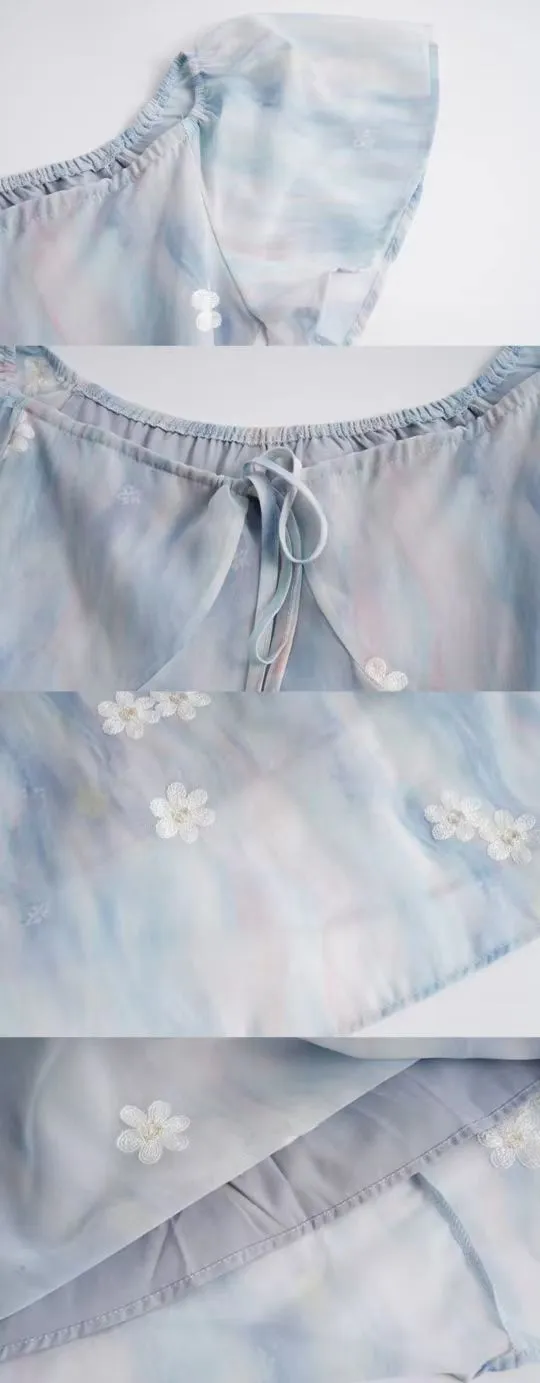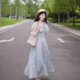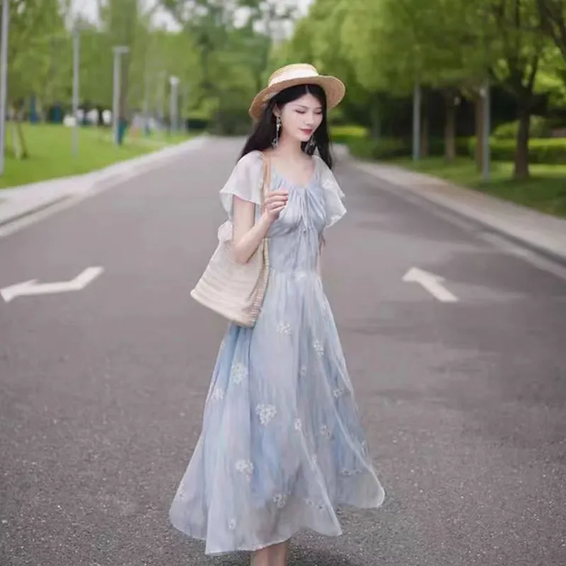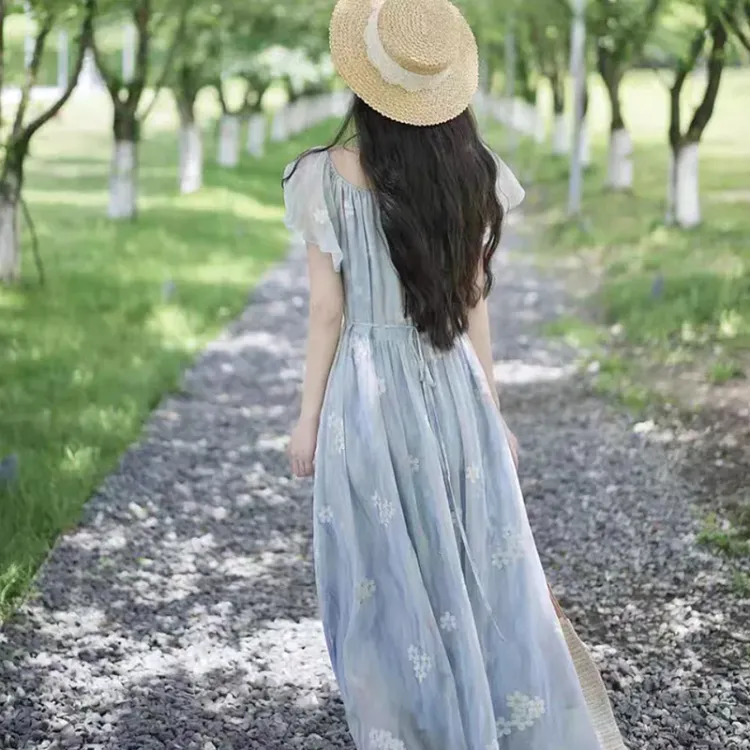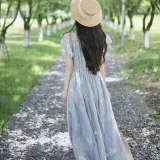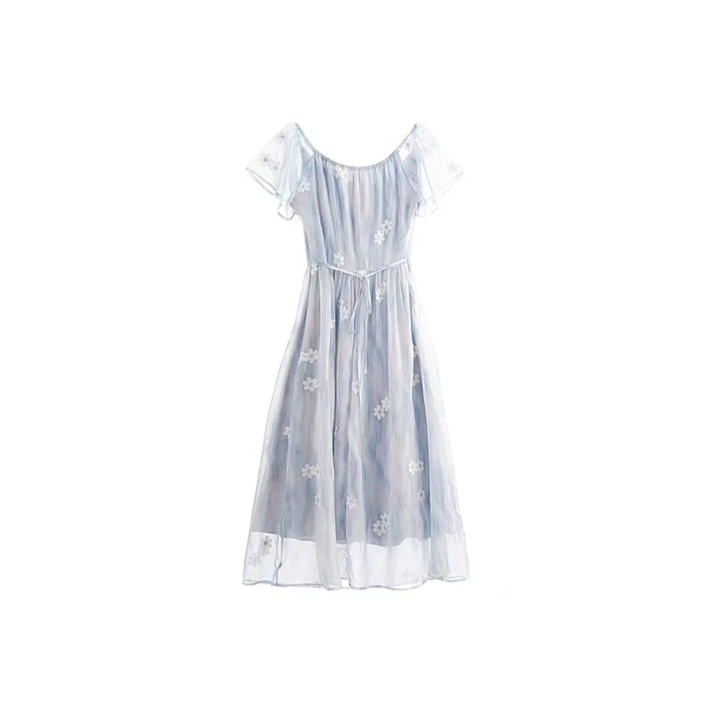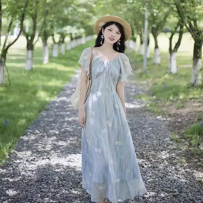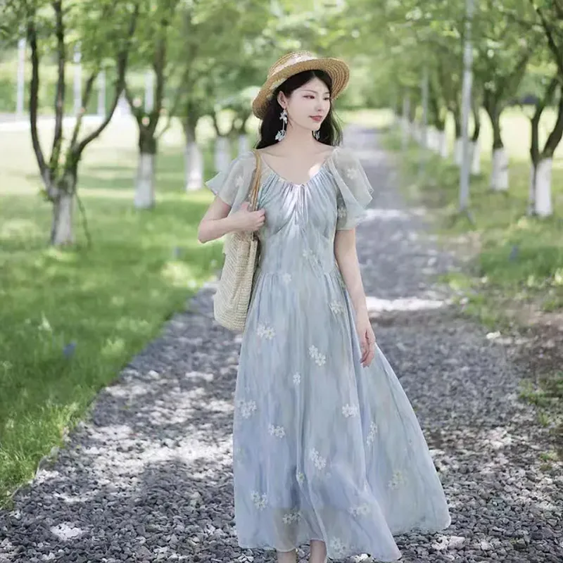 AFGGD Короткий рукав платье женское синий