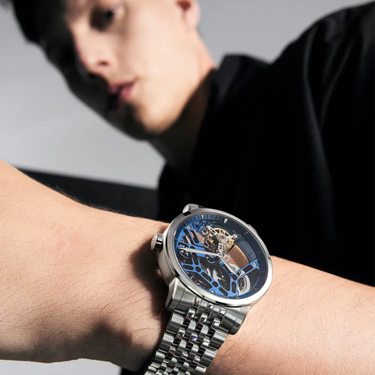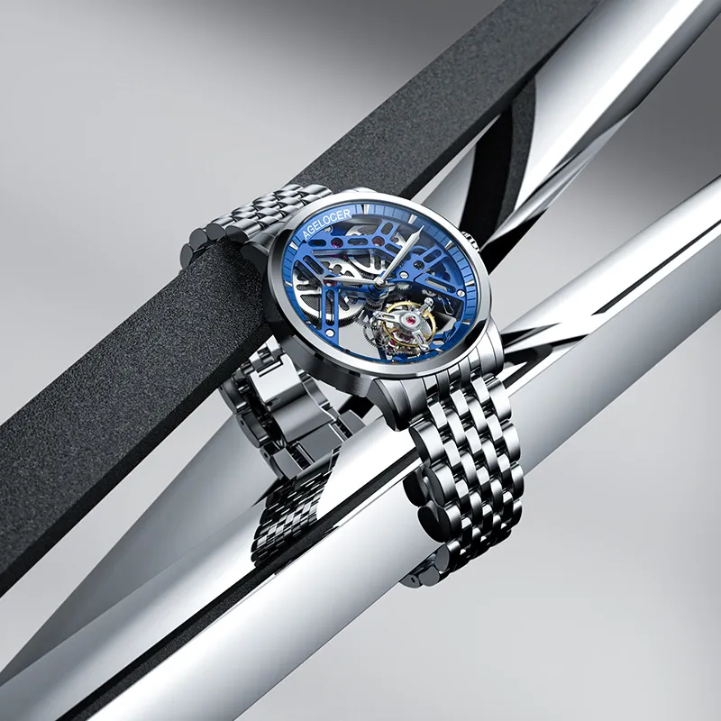 AGELOCER Мужские часы с ручным заводом механический с циферблатом в виде скелета