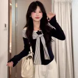 Комплект:Темно-синий синий топ + белые штаны