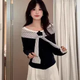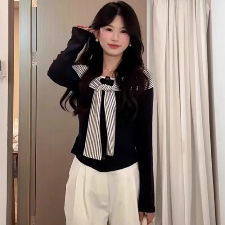 Темно-синий синий топ + белые штаны
