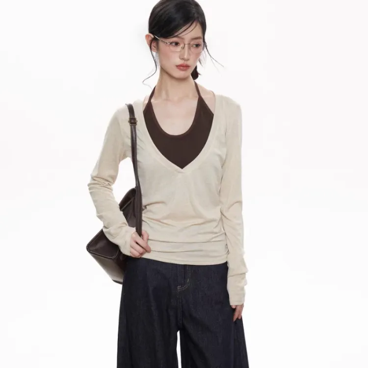 Молочно-чайный топ с эффектом двухслойности