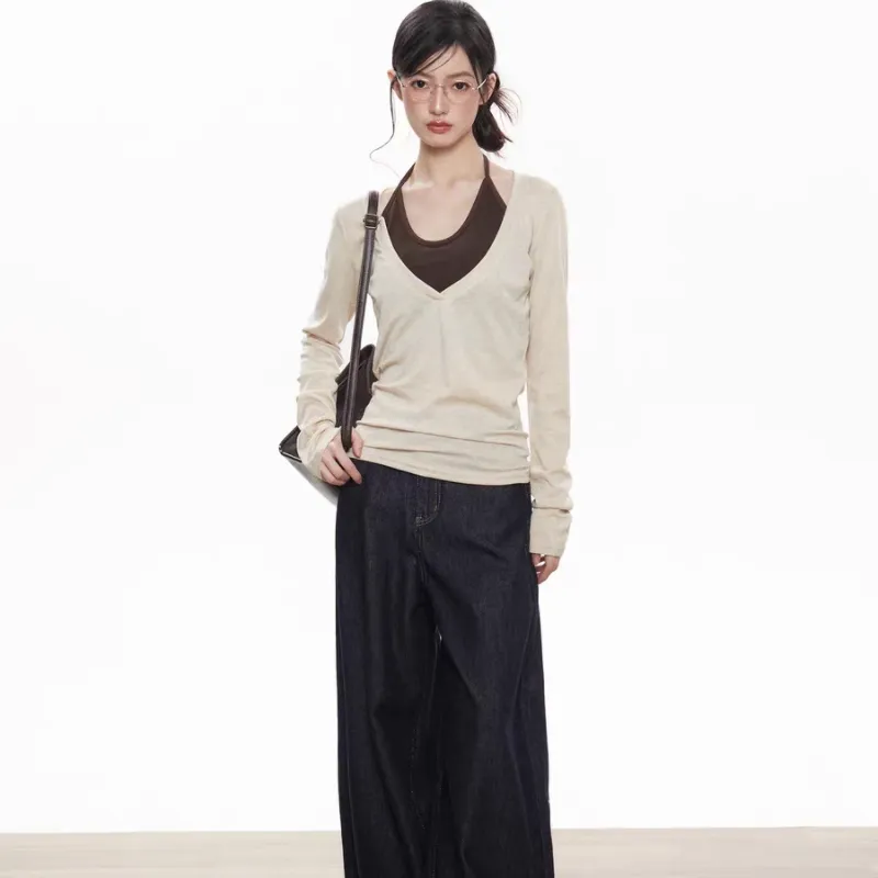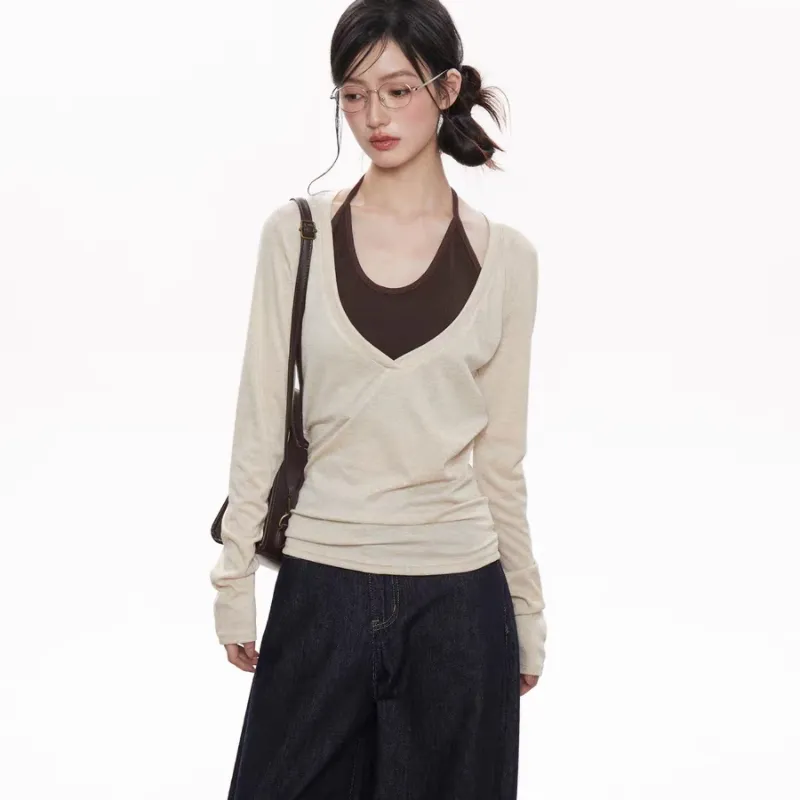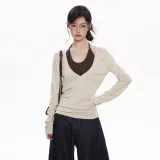 Aghr Молочно-чайный Mock Два предмета Топ Женские T-рубашки