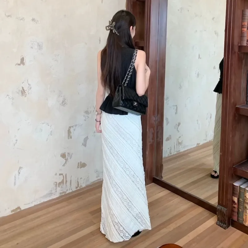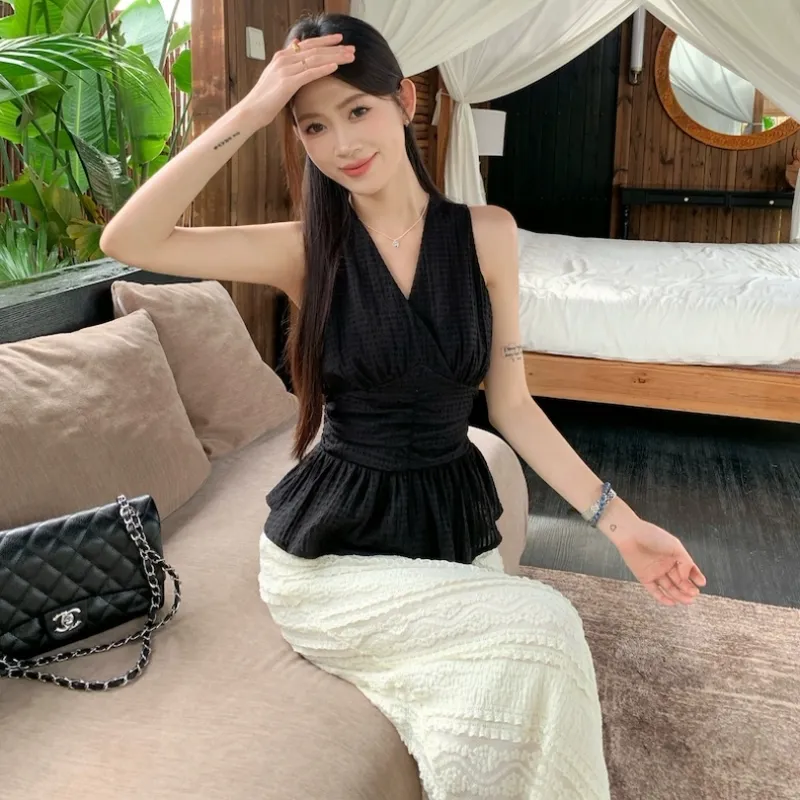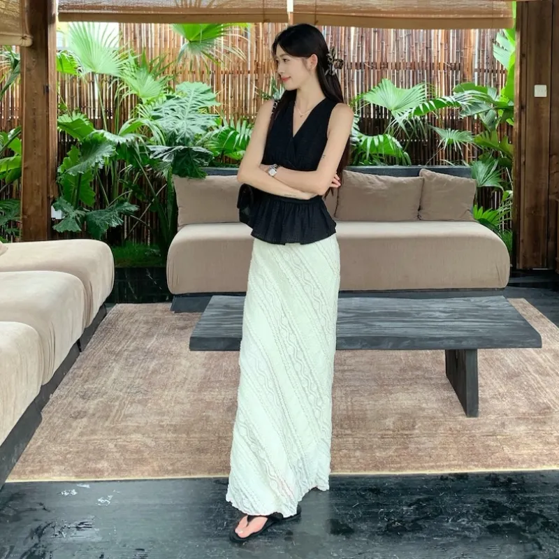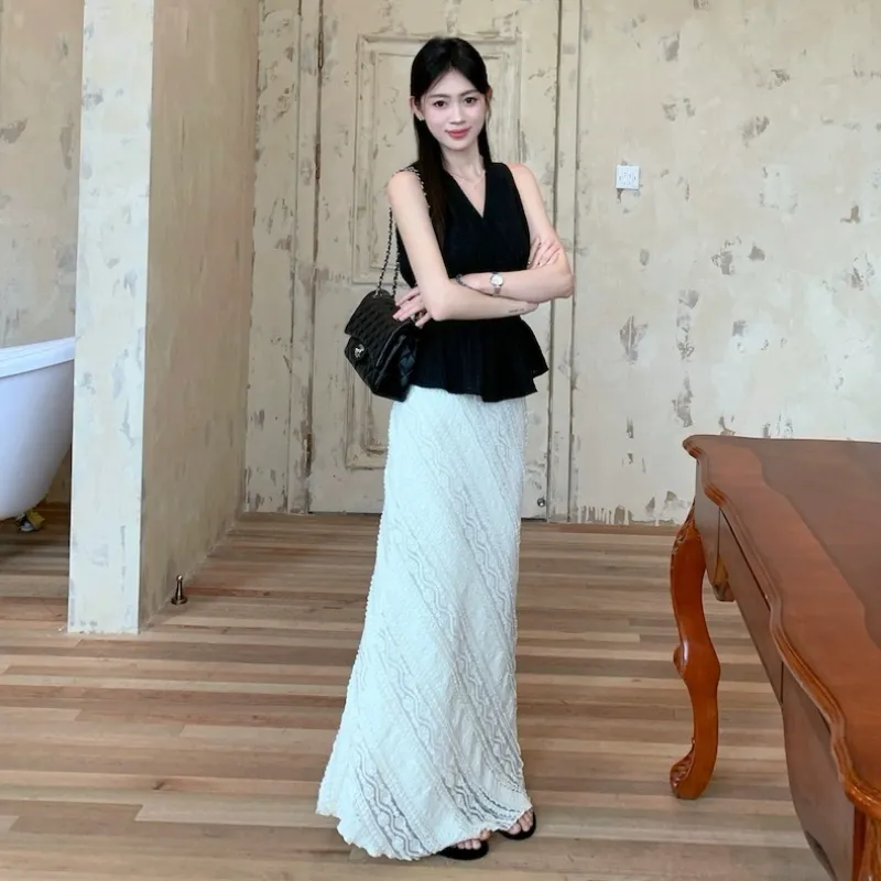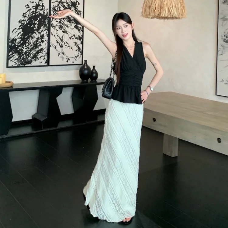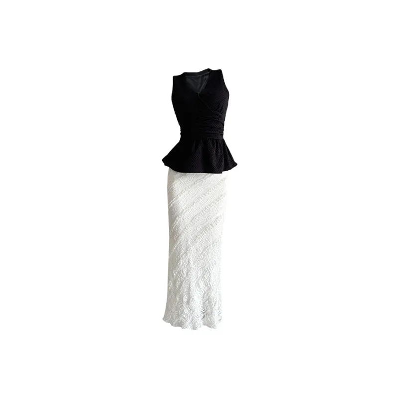Комплект:Чёрный топ + Белая юбка