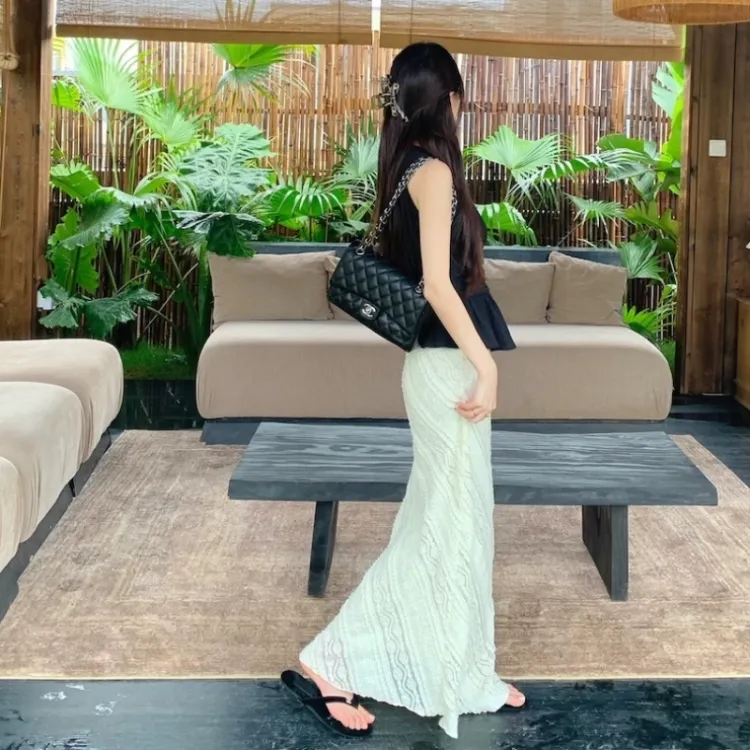 Чёрный топ + Белая юбка