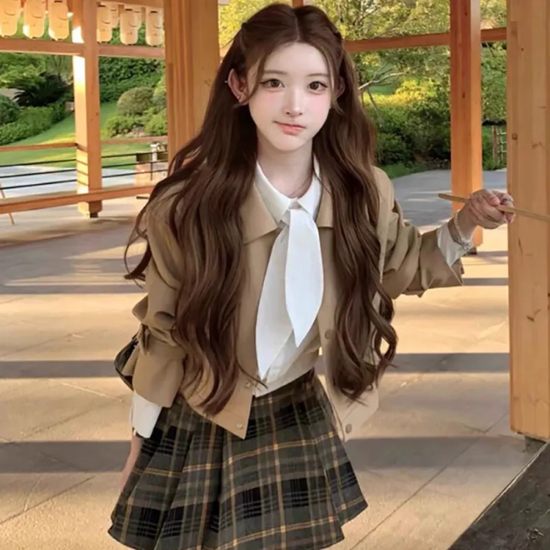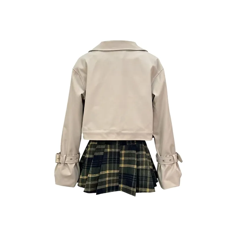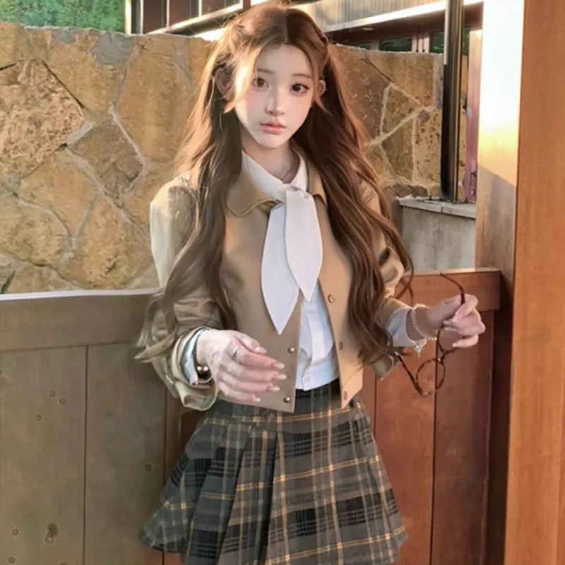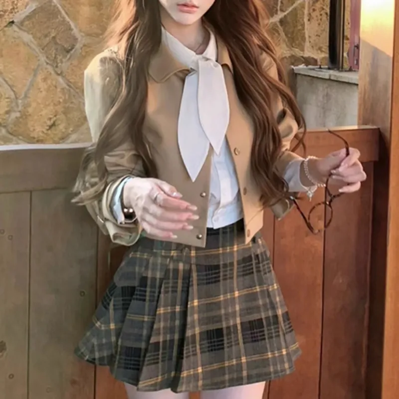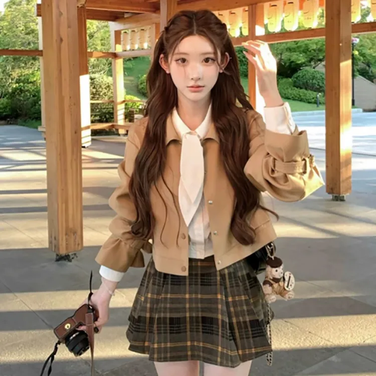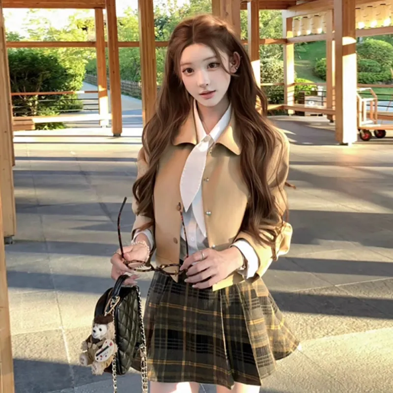 Комплект:Хаки Тренчкот + Рубашка + Короткая Юбка