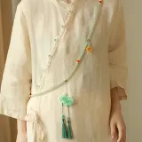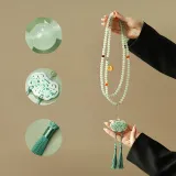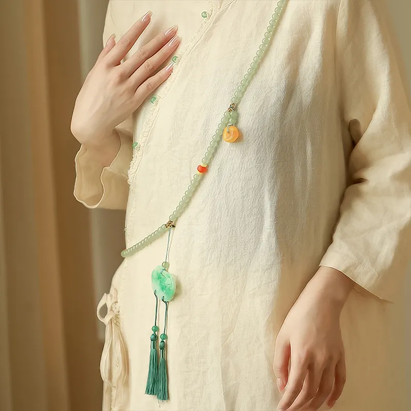 Диаметр бусины составляет примерно 0,8 см, плоская подошва. Размеры бусины: примерно 0,8 см * 0,4 см. Размеры нефритовой подвески: примерно 5,4 см * 3,8 см. Размеры желтой подвески: примерно 2,2 см * 1,9 см. Длина кисточки: примерно 11,5 см. Длина цепи: примерно 120