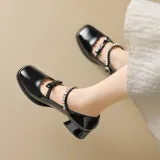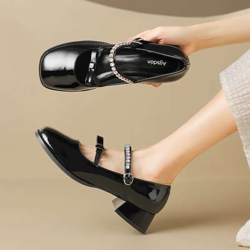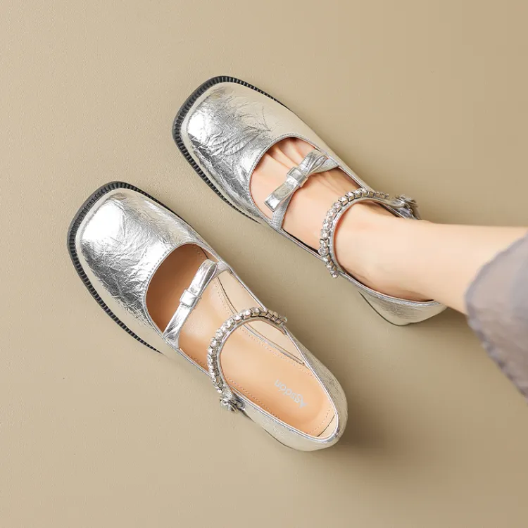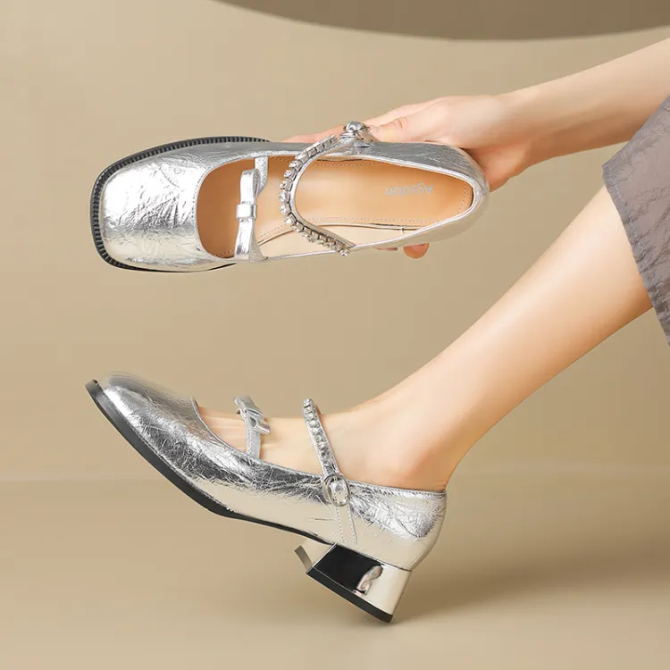 AGSDON Грубый каблук Туфли Мэри Джейн 3,5 см Женские Серебряные