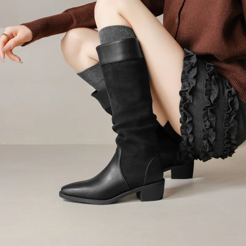 AGSDON Высокие сапоги до колена 5 см женские