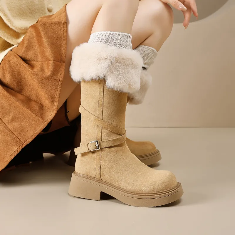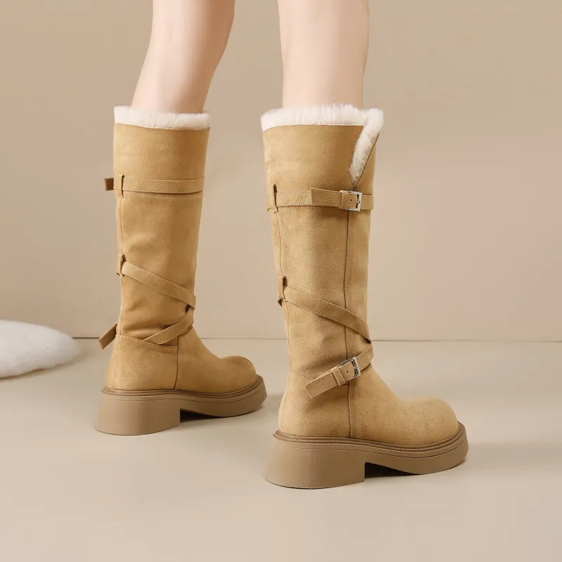 AGSDON Высокие сапоги до колена 5 см женские