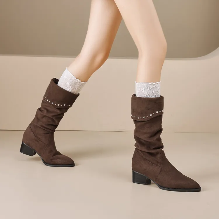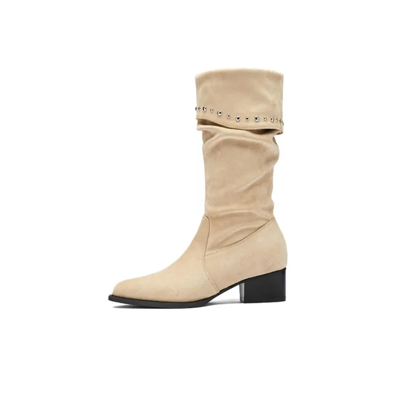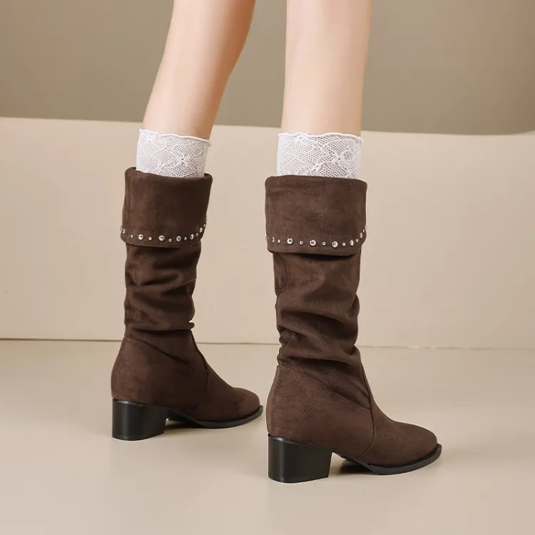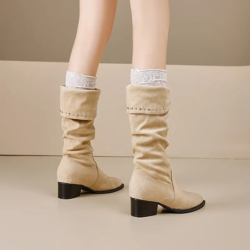 AGSDON Женские высокие сапоги на каблуке 6 см