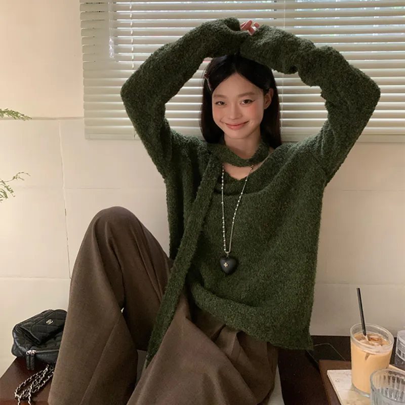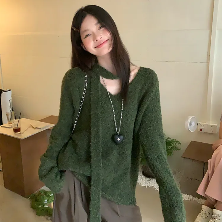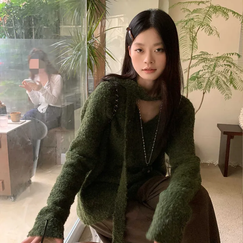 AHDO Оливково-зеленый Женский Трикотаж