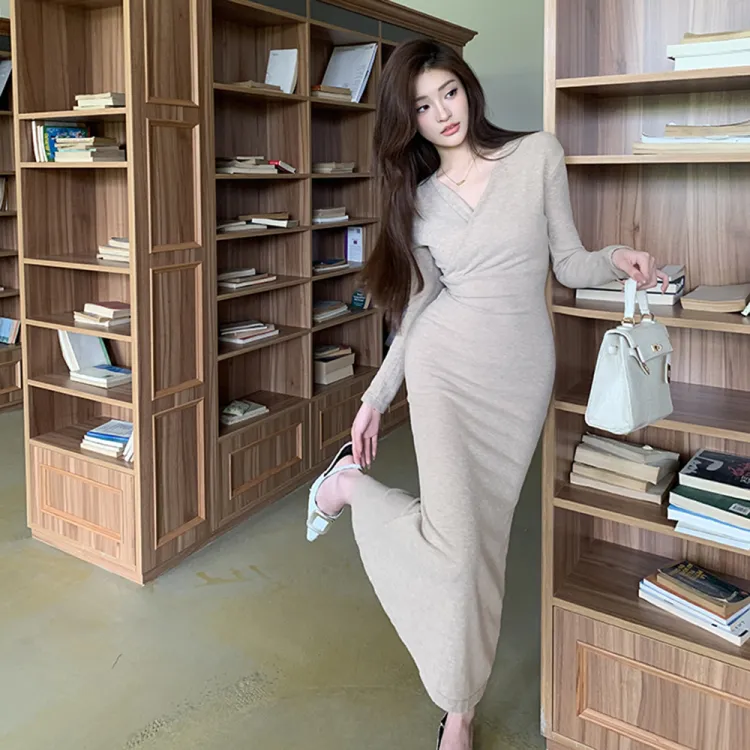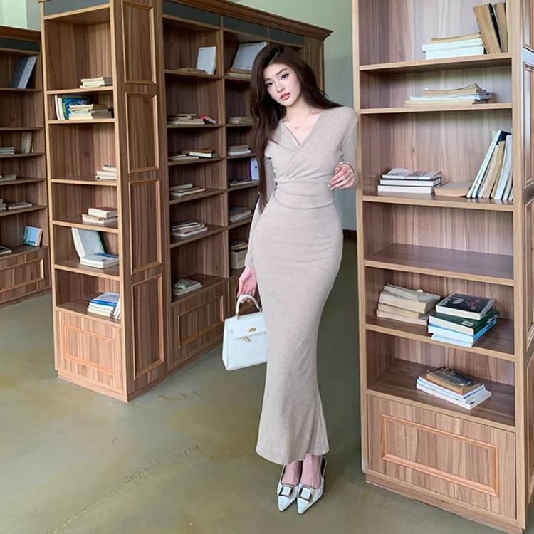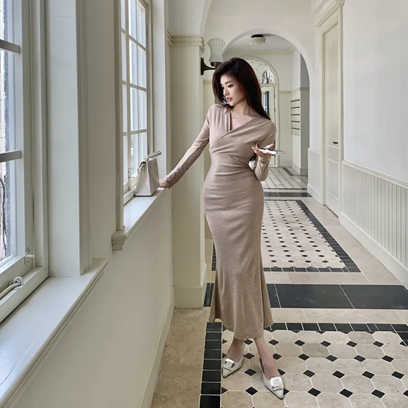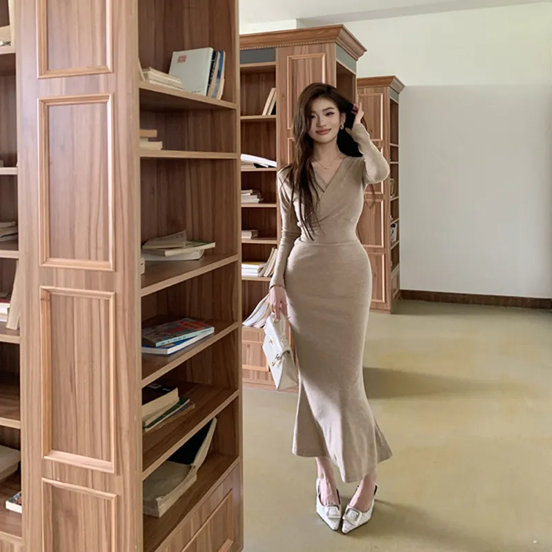 AHDO Длинное платье с длинными рукавами женское