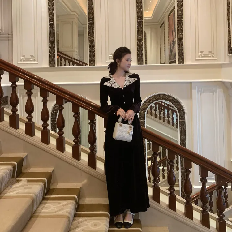 AHDO Длинное платье с длинными рукавами женское