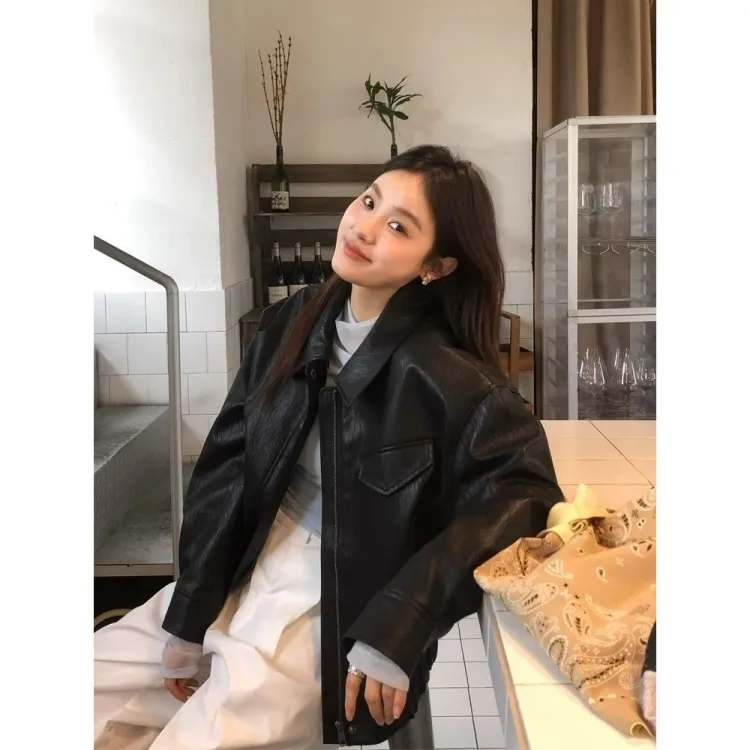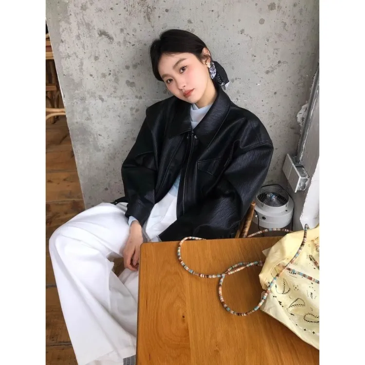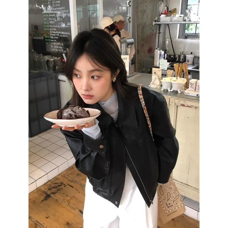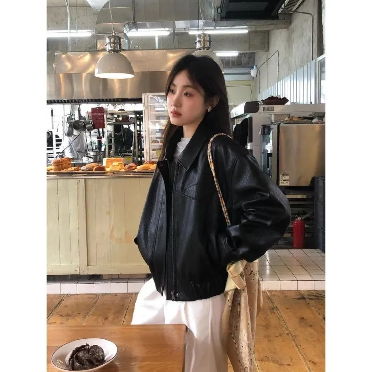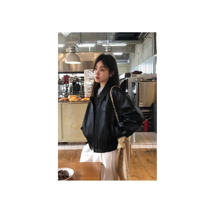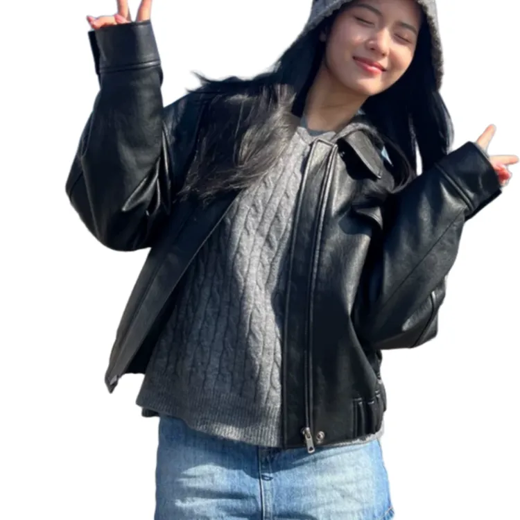 AHRTB Черная кожа куртка [Высокое качество с подкладкой] Женские куртки