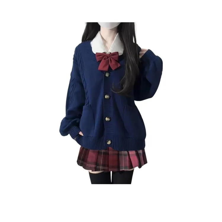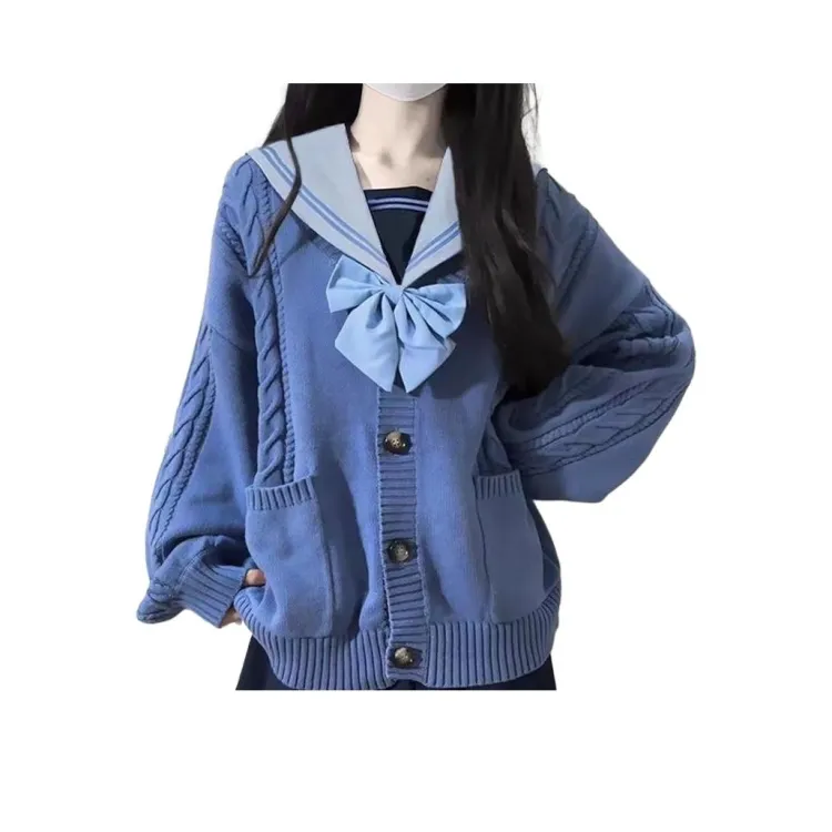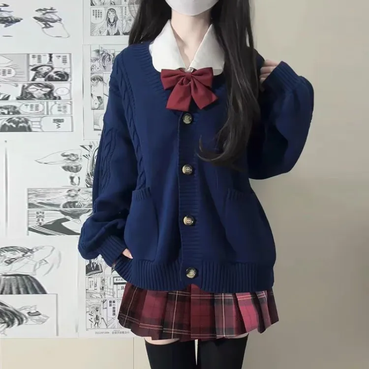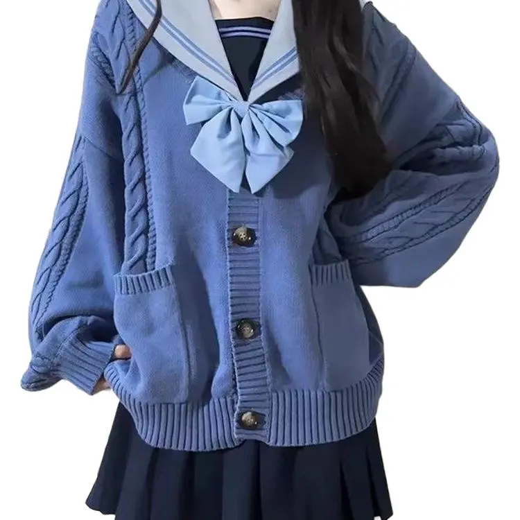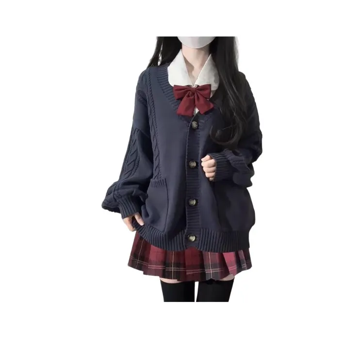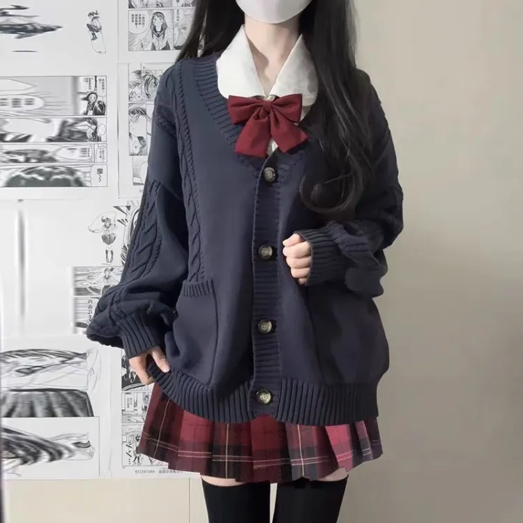 Тёмно-синий толстый кардиган из пряжи