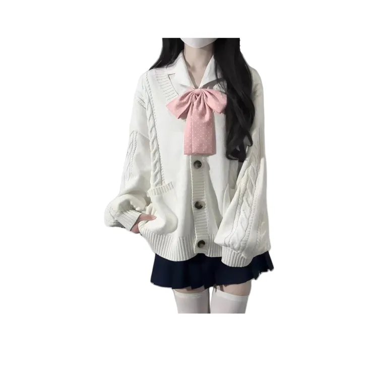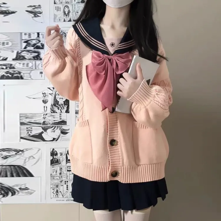 Кардиган Розовый Цветок Вишня Толстый Вязаный