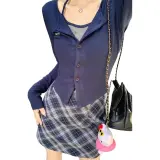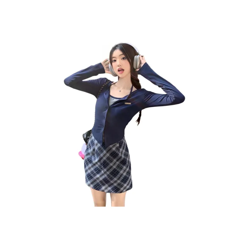 Темно-синий синий топ + короткая юбка [комплект из двух предметов]