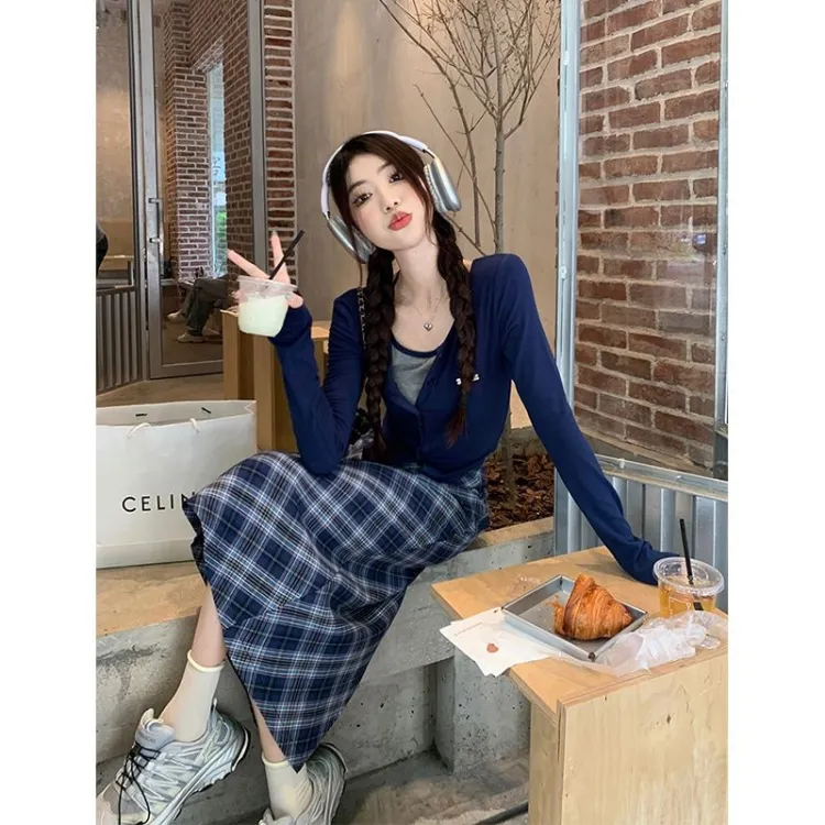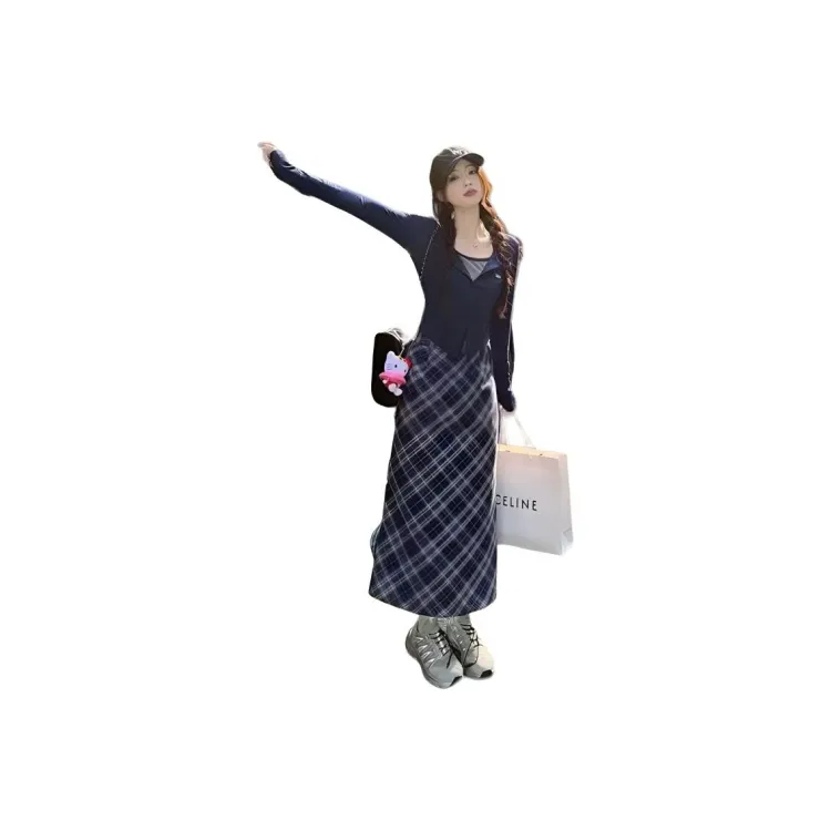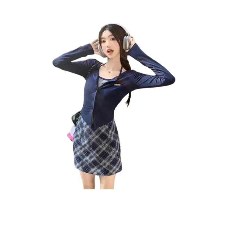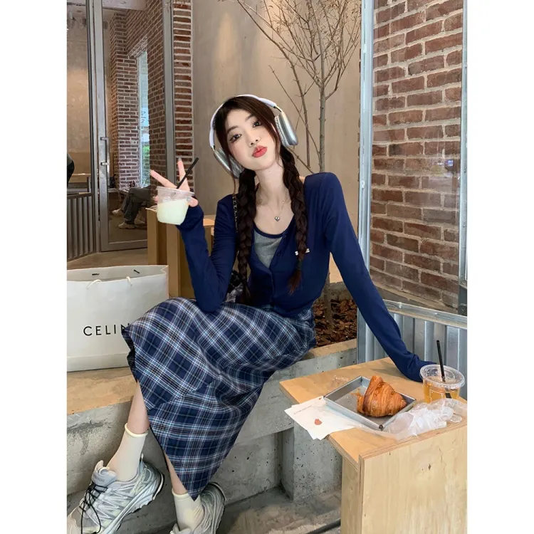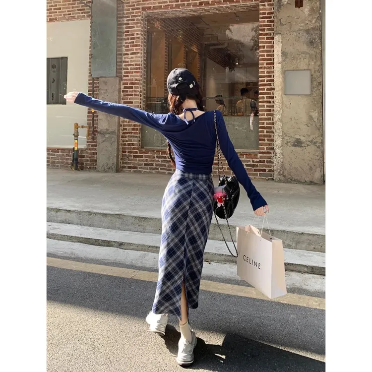 Темно-синий синий топ + длинная юбка [комплект из двух предметов]