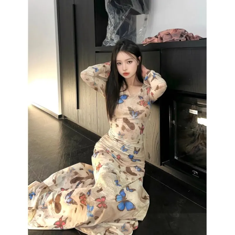 AHRTB Длинное платье с длинными рукавами женское