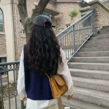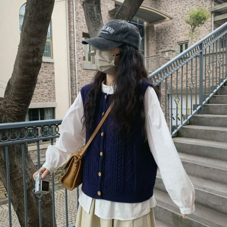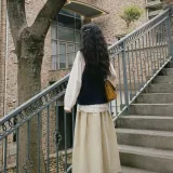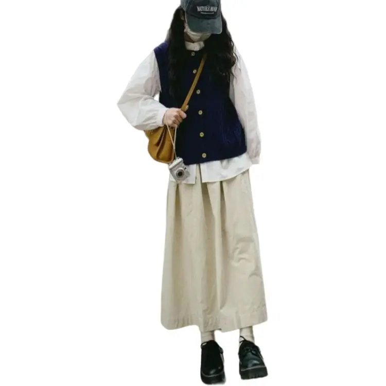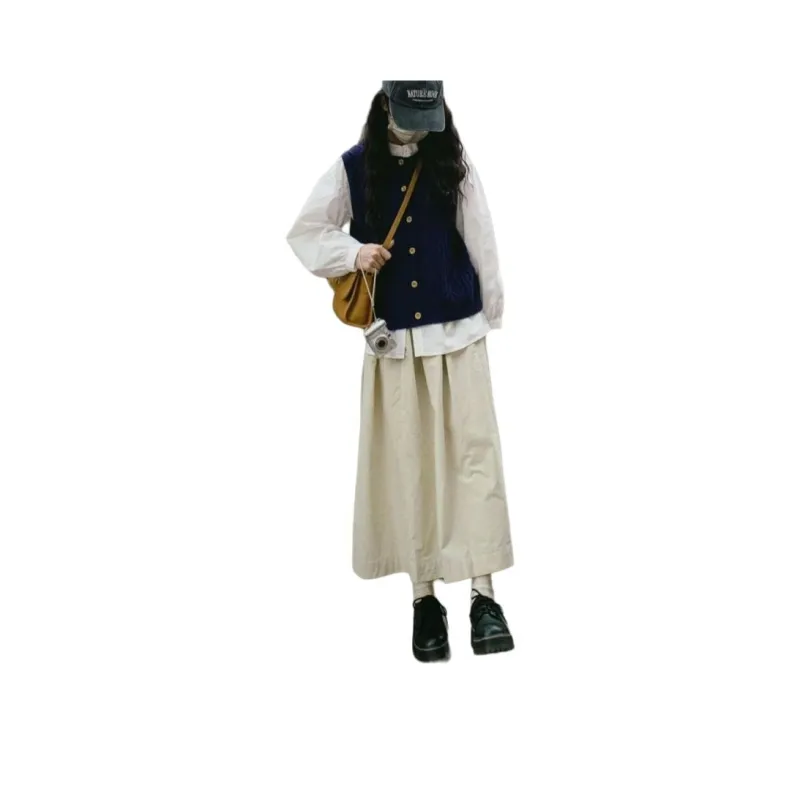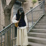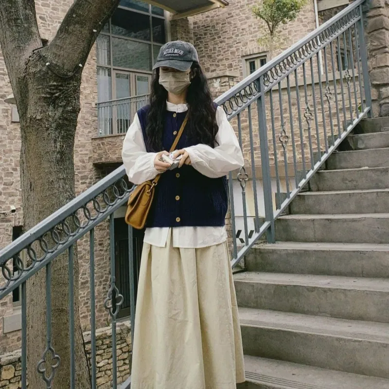 Вязаная ткань, жилет + белая рубашка + юбка [трехкомпонентный комплект]
