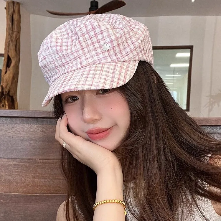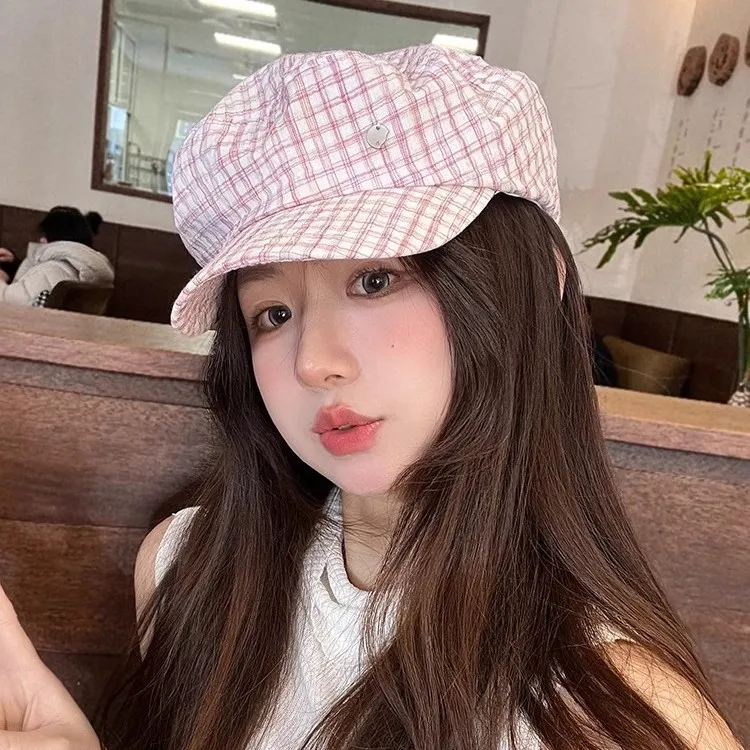 Розовый берет в клетку Painter