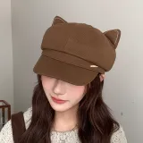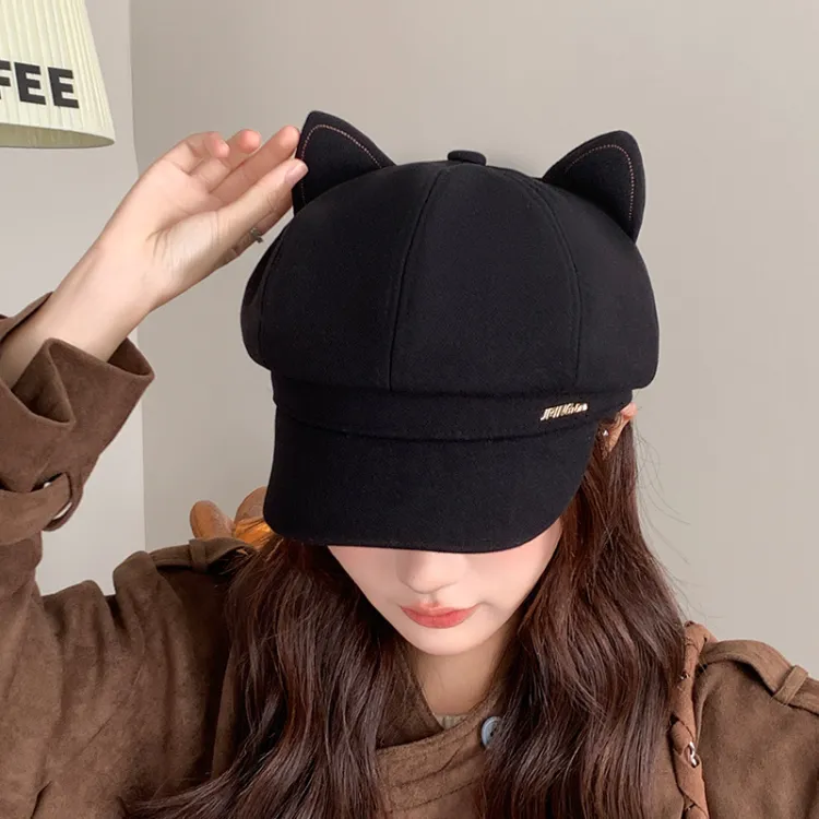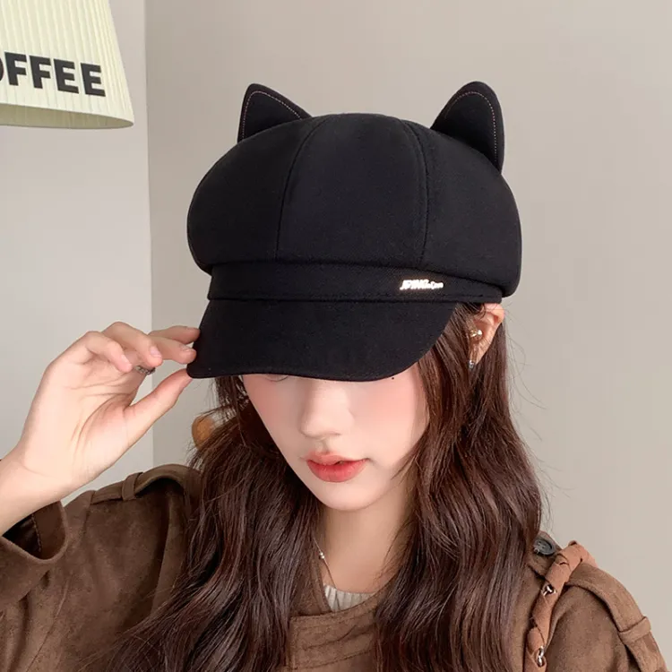 Черная кепка с восьмиугольным дизайном в форме уха кошки
